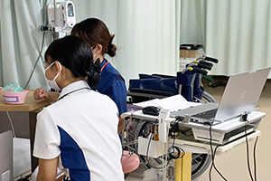 初めて心電図をつけている患者さんと接し、疾患と生活を結び付けて看護している場面を見学できました。入退院時の対応や検査時の対応等、様々な状況で自分が何をしたらよいのか、どうコミュニケーションをとっていくか考えながら対応することを学びました。担当してくれた看護師さんからケア以外のことも、「こうしていくと良いかも」「私はこうしてきたよ」と話を聞くことができ、自分も将来こういう看護師になりたいと目標が持つことができました。